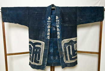 当時の制服として使用していた法被です。上の初荷の写真でも、似たデザインの法被を着用していたことが確認できます。