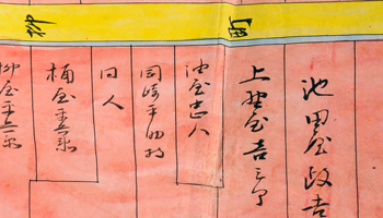写真中央にある「油屋忠八」が、新三郎の高祖父である飯島忠八です。江戸時代の商家では、「油屋」のような屋号を名字の代わりに使っていました。