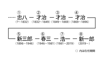 なお、二代目から四代目まで「才治」の名が続くのは、襲名制をとっていたからです。