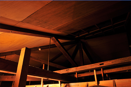 屋根裏から見ると木造であることがよく分かります。