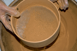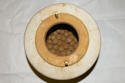 セラミックの壺の中に、たくさんのセラミックボールが入っています。この中に粗く砕いだ桂皮(シナモンの元になる木の皮です)を入れます。