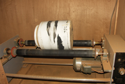 壺の蓋を閉めて、回転させます。1日かかってボールとこすれ合うことによって、ゆっくりと桂皮がシナモンパウダーへと姿を変えて行きます。