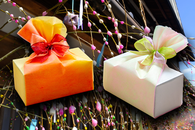 小瓶2本セットを、初春をイメージしたラッピングで包みました。1・2月限定になります。ラッピングは「どんど焼き」と「まゆ玉」をイメージしたもの2種類ございます。お好きなタイプをお選びくださいませ。