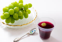 2025.09.10 商品情報 季節のゼリー「ひと粒のシャイン」販売開始のご案内 ■上田本店、分店:9月11日(木)より 価格 税込310円 ぶどう「コンコード」のゼリーに、穫れたて「シャインマスカット」をそのままひと粒浮かべてみました。ふたつのぶどうの豊潤な味わいが、お口の中で爽やかに広がります。季節限定の楽しいぶどうゼリーです。秋のティータイム、デザートにどうぞお召し上がりください。