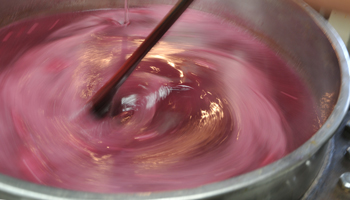みすゞ飴づくりは、とれたての国産果物を丹念に加工して、果汁を絞るところから始まります。 一番おいしく、香り高く、色鮮やかな、完熟果実。それを、一つ一つ愛情を持って仕込んでいきます。