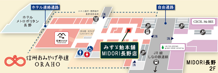 | 所在地 | 〒380-8543 長野県長野市南千歳1-22-6 長野駅ビル「MIDORI」2F |